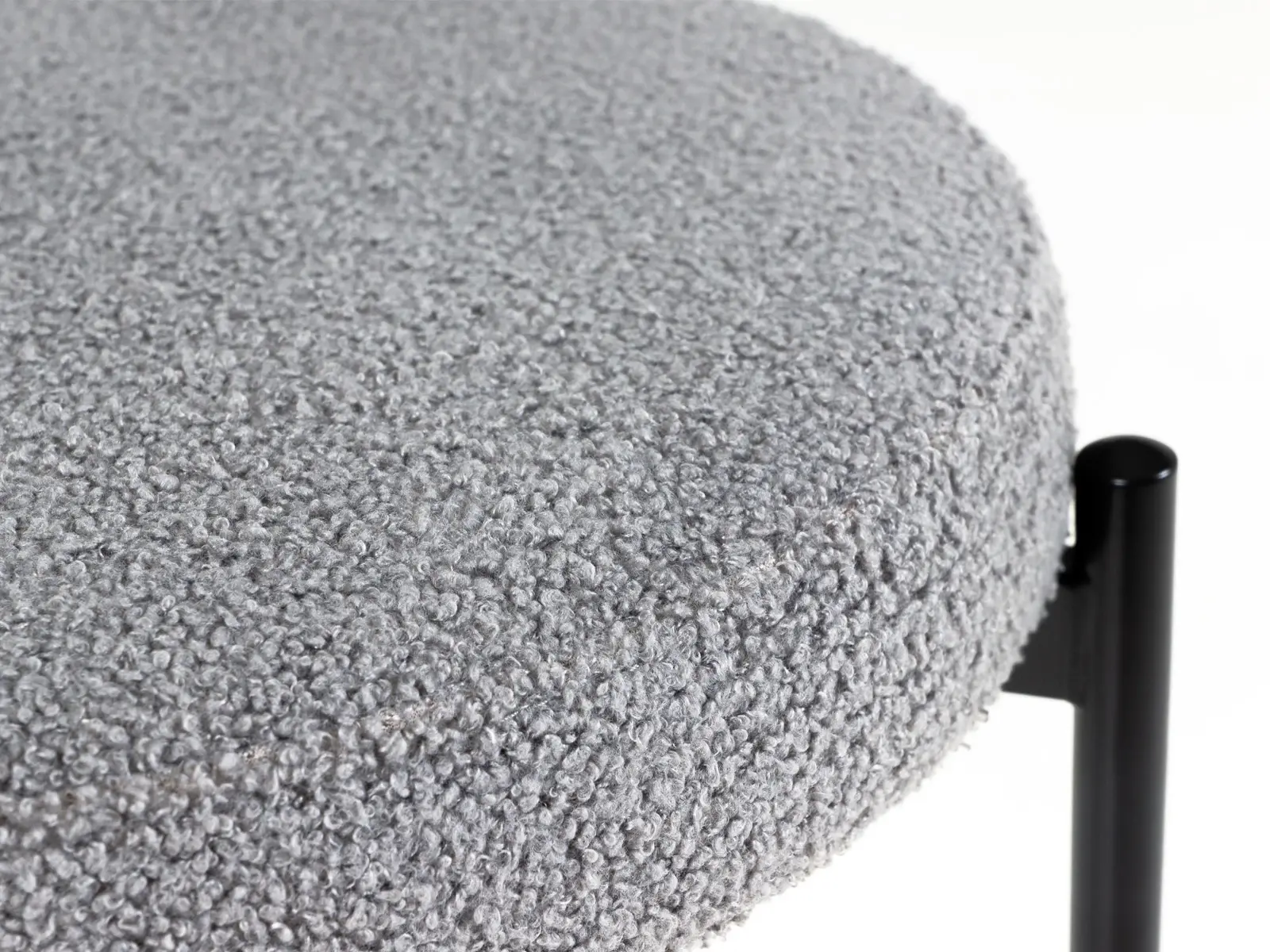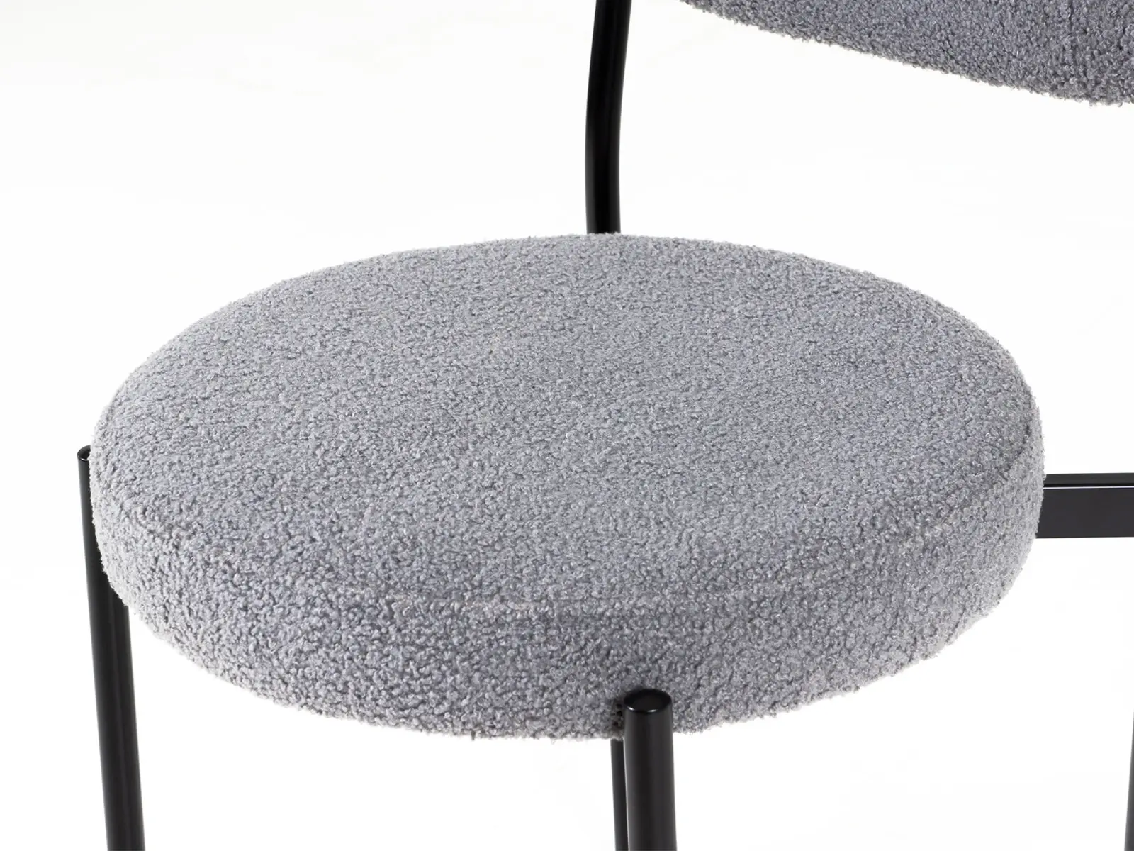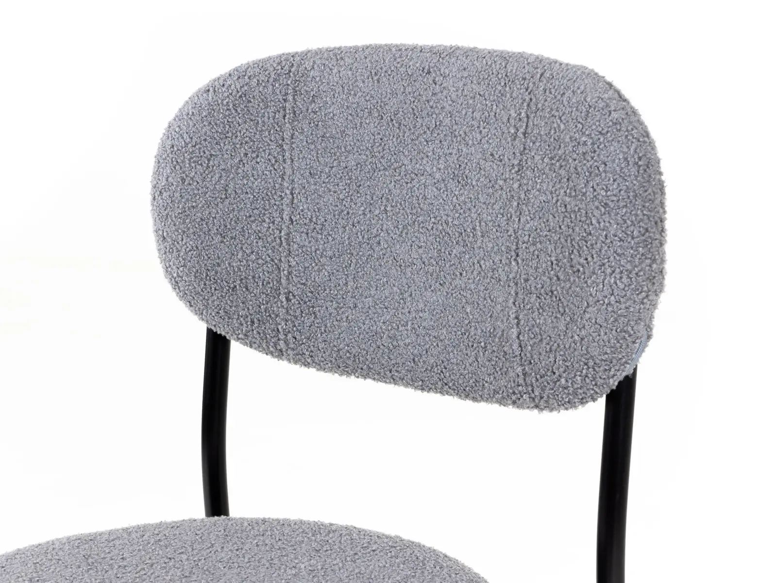 Материал обивки - искусственный мех. Прочный металлический каркас. Металлические опоры черного матового цвета. На опорах предусмотрены защитные пластиковые накладки, которые придают стулу дополнительную устойчивость и защищают пол от царапин.