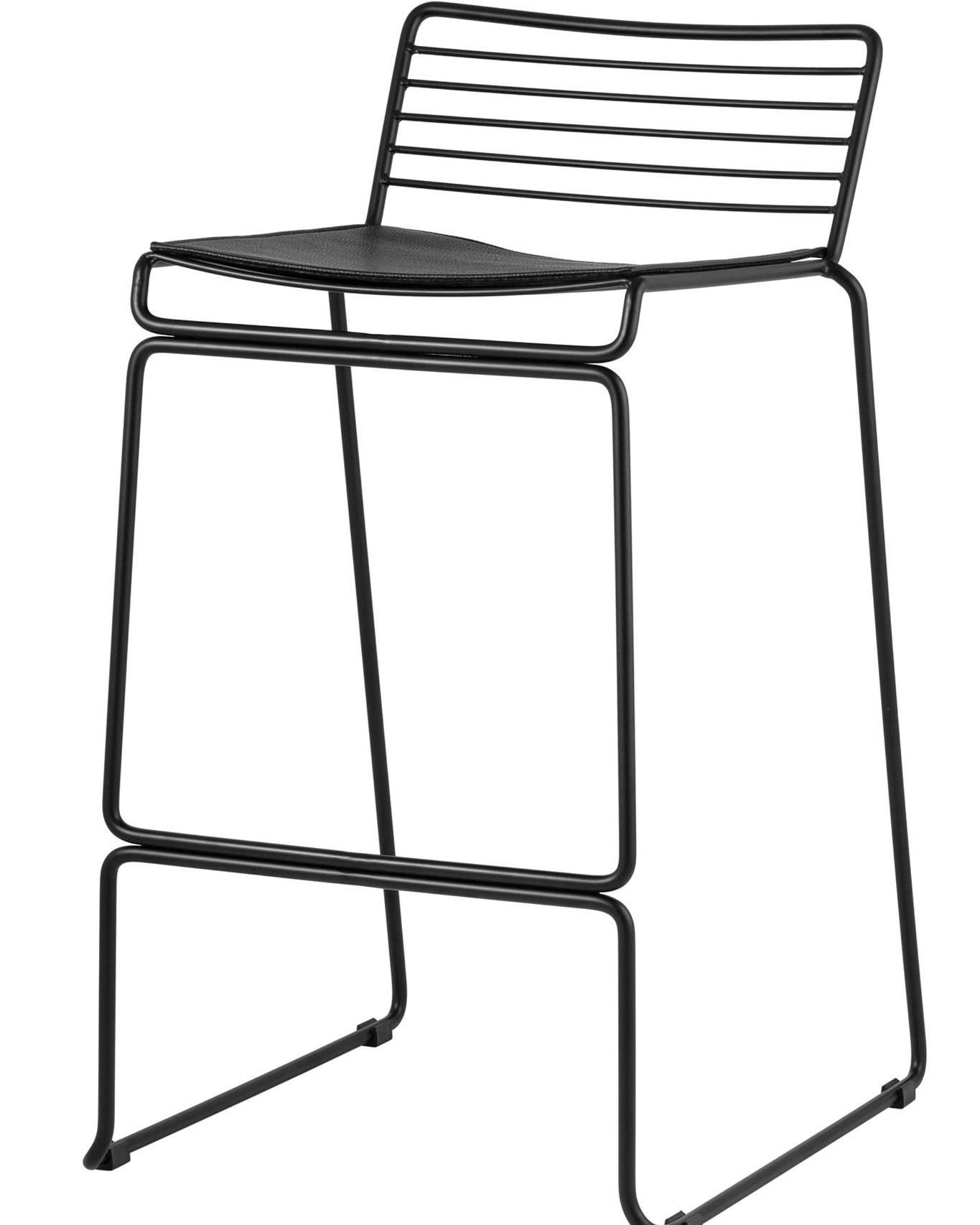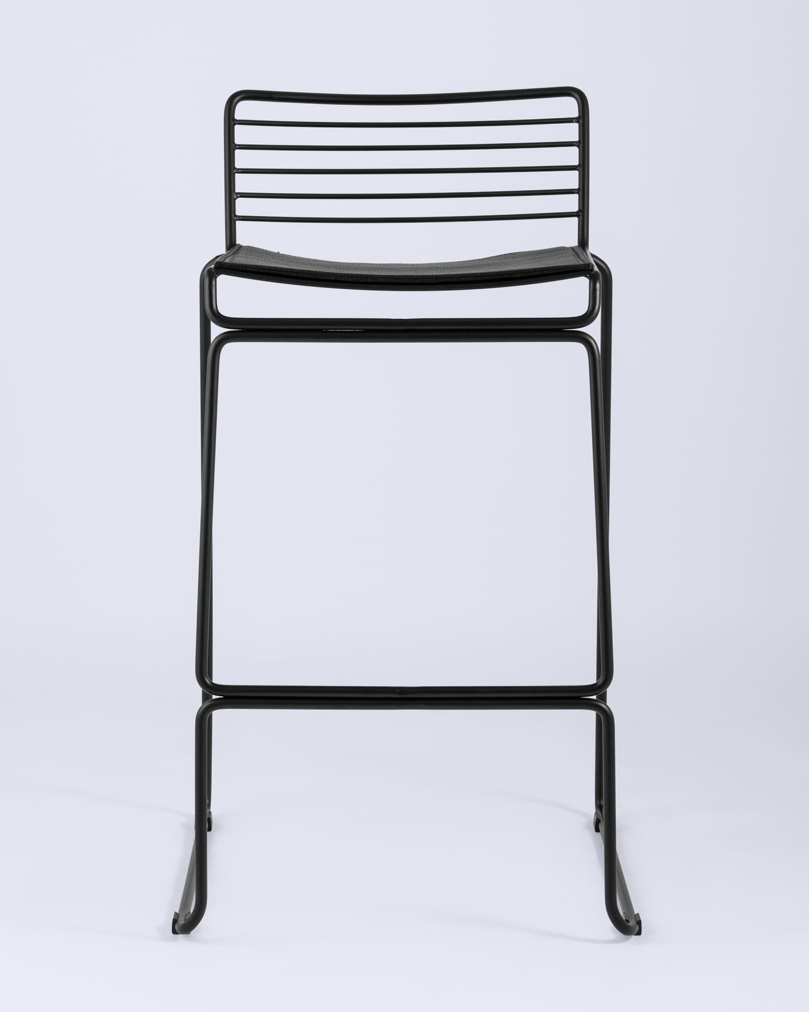 Современная модель барного стула Hero подходит как для интерьера обеденной зоны дома, так и для кафе или ресторана. Спинка и сидение выполнены из металлических прутьев черного цвета. Подушка изготовлена из черной экокожи в тон каркасу. Ножки выполнены из металла в тон сидения и имеют подставки, которые предотвращают скольжение по поверхности пола.