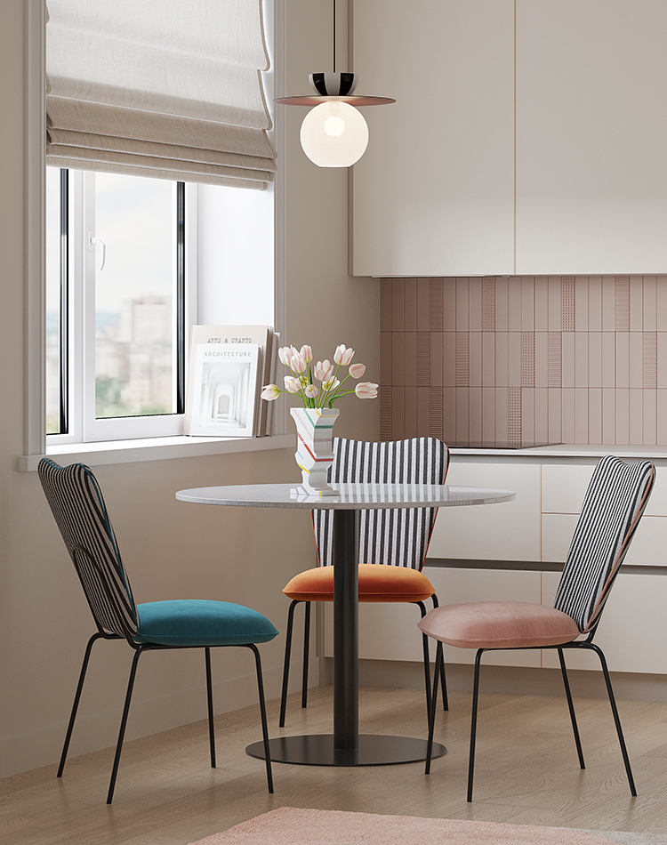 Стул Pompadour с обивкой из бархатистого велюра – не просто предмет мебели, а настоящий художественный акцент, способный превратить ваш дом в оазис комфорта и стиля. Его можно легко представить как в классическом интерьере, среди витражей и люстр с хрустальными абажурами, так и в современном пространстве в стиле фьюжн или гранж. Особенности и преимущества: - Обивка из велюра, с его бархатистой поверхностью и деликатным блеском, придает стулу элегантный и изысканный вид. - Комфорт при сидении достигается за счет мягкого сиденья с наполнителем из пенополиуретана. - Ножки мебели изготовлены из прочного железа с износостойким порошковым покрытием, которое защищает их поверхность от коррозии и внешних воздействий. - Спинка необычной формы с полосатым принтом привносит в дизайн интересный акцент. Материалы: железо, фанера, 100% полиэстер, пенополиуретан. Размеры: 48,5х45х88,5 см. Высота сиденья: 50,5 см. Ширина сиденья: 48,5 см. Глубина сиденья: 45 см. Высота спинки: 49 см. Ширина спинки (верх): 47 см. Ширина спинки (низ): 31 см. Максимальная нагрузка: 120 кг. Цвет: терракотовый. Рекомендуется регулярно пылесосить мебель с помощью специальной насадки – резиновой или мягкой щетки. Образовавшиеся пятна можно удалять губкой или салфеткой со слабым мыльным раствором воды. Запрещается использовать абразивные материалы и агрессивную бытовую химию.