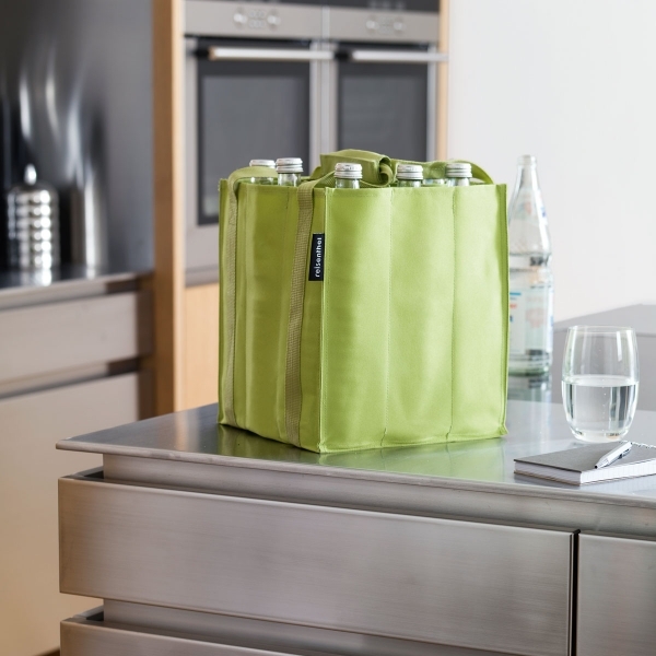 Сумка-органайзер с большим потенциалом. Во-первых, в ней можно хранить бутылки с соками и морсами, которые вы пьете ежедневно. Во-вторых, она отлично подойдет для стеклянных или пластиковых бутылок, которые вы планируете сдать в переработку. Ну и в-третьих, ее можно использовать для хранения пластиковых пакетов и других кухонных мелочей. 9 отделений для бутылок объемом до 0,75 литра. По бокам две ручки для переноски, соединяемые между собой липучкой. Сумка легко складывается для компактного хранения. Приятный плюс: размер дна сумки соответсвует стандартному размеру корзин велосипедов, так что её удобно перевозить и брать на пикник.