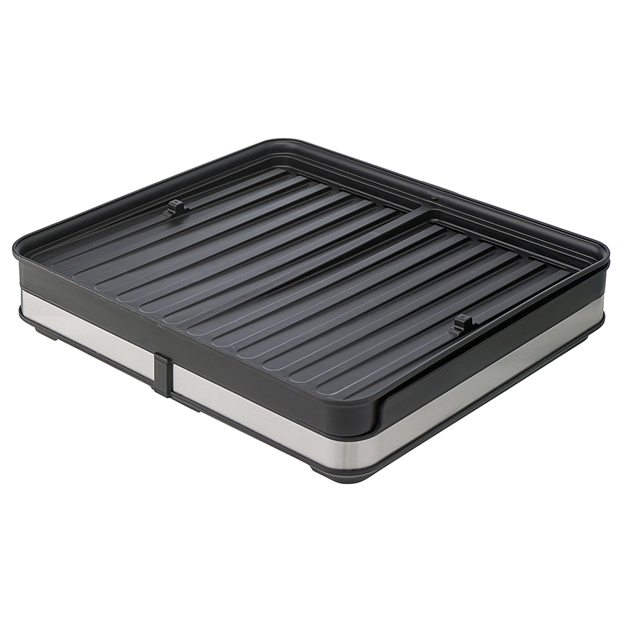 Сушилка Atle – компактная, но в то же время вместительная модель с раздвижной конструкцией, в которой предусмотрены отделения для посуды и кухонных принадлежностей. Удобное размещение и надежную фиксацию тарелок и других емкостей обеспечивают железные разделители. Поддон выполнен из практичного полипропилена, который легко моется. Стальные элементы на корпусе имеют специальное покрытие против отпечатков пальцев. Настольную сушилку можно размещать в любом месте и для ее установки не требуется делать отверстия в стене. Для хорошей устойчивости в раздвижном состоянии предусмотрены специальные ножки, расположенные в нижней части сушилки, которые выдвигаются одним движением руки. Материалы: полипропилен, сталь, железо. Размеры в сложенном виде: 36,3х30,2х16,8 см. Размеры в разложенном виде: 36,3х52х16,8 см. Цвет: черный. Сушилку можно очищать от загрязнений в теплой мыльной воде с помощью мягкой губки. Запрещается использование агрессивной бытовой химии и абразивных материалов.