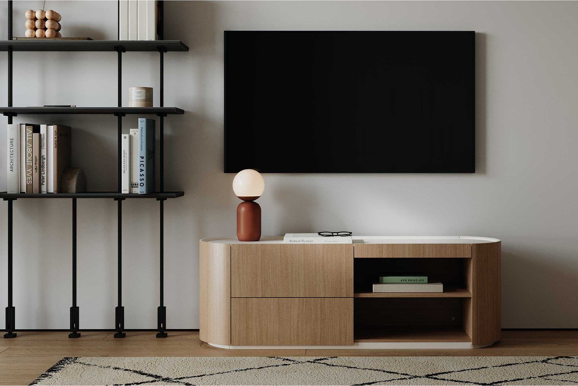 Тумба Lagom под ТВ 2 ящика 2 полки ширина 140 см (натуральный дуб, молочный)