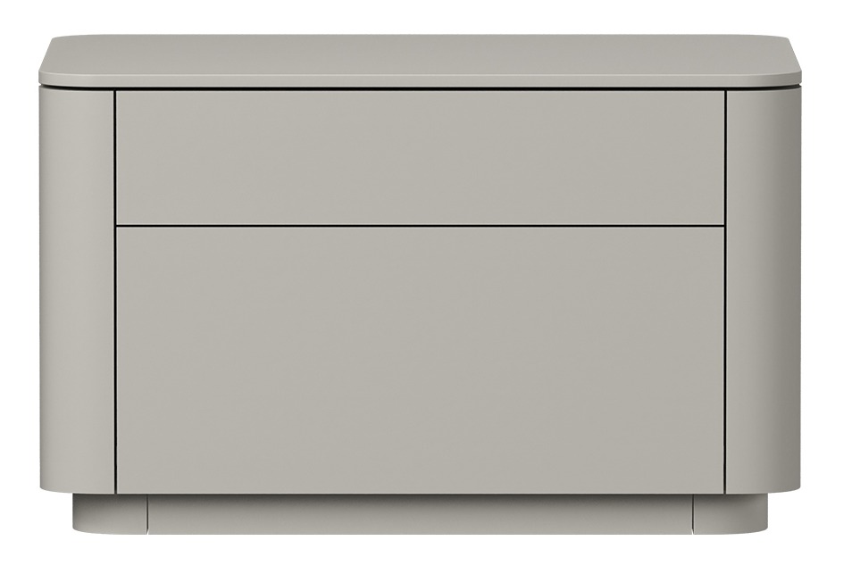 Тумба Tammi увеличенного формата в элегантном серо-бежевом цвете — это стильное и вместительное решение для вашей спальни. Два просторных ящика позволят аккуратно разместить все необходимые вещи, а широкая столешница станет идеальной площадкой для лампы, книг или декора. Лаконичный дизайн и благородный оттенок делают эту тумбу универсальным дополнением к любому интерьеру.