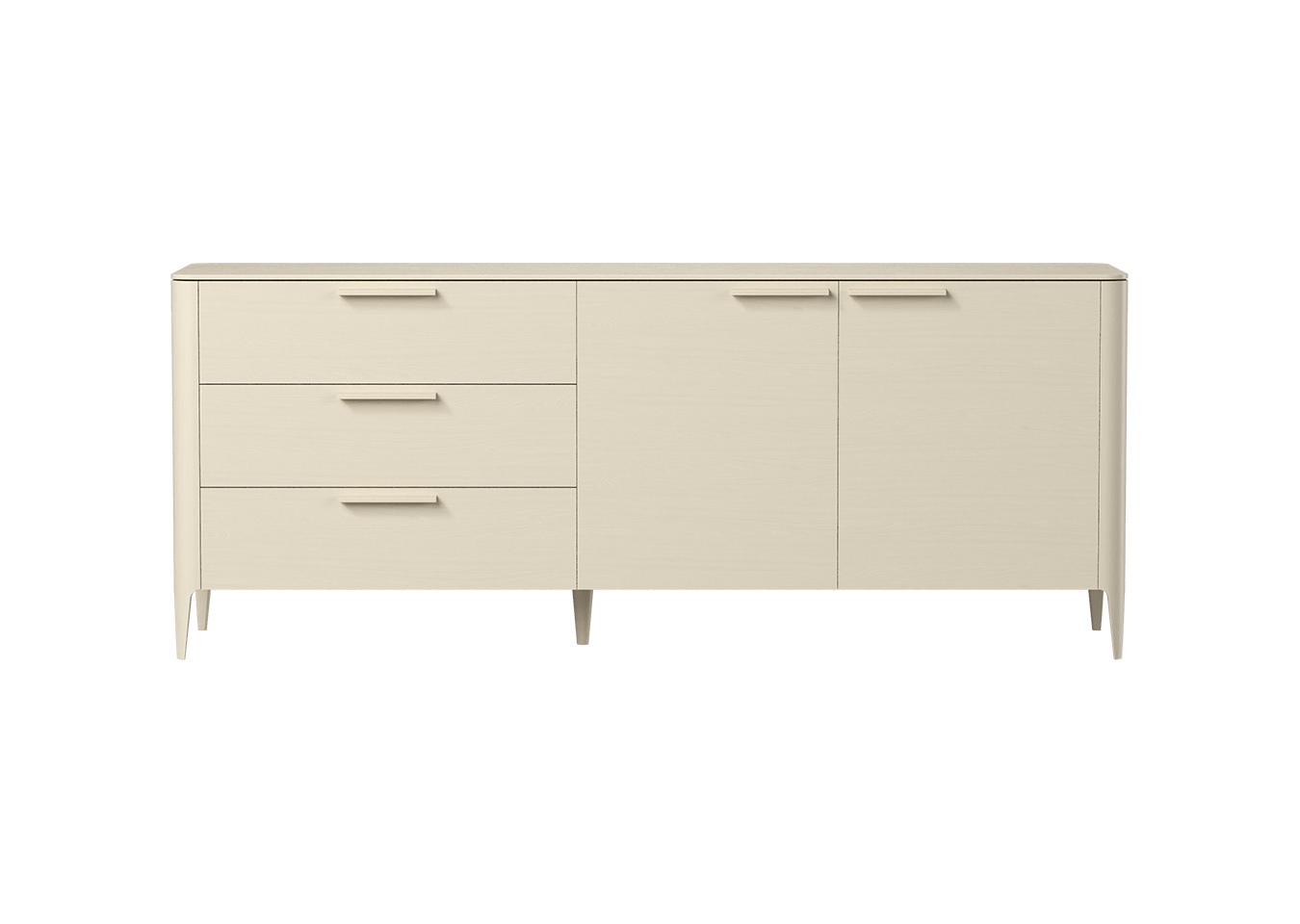 Высота: 80 см Ширина: 198 см Глубина: 51 см При производстве используется шпон натурального дуба, покрытие эмаль NCS S 1502-Y50R Материал: массив дуба, натуральный шпон дуба, МДФ