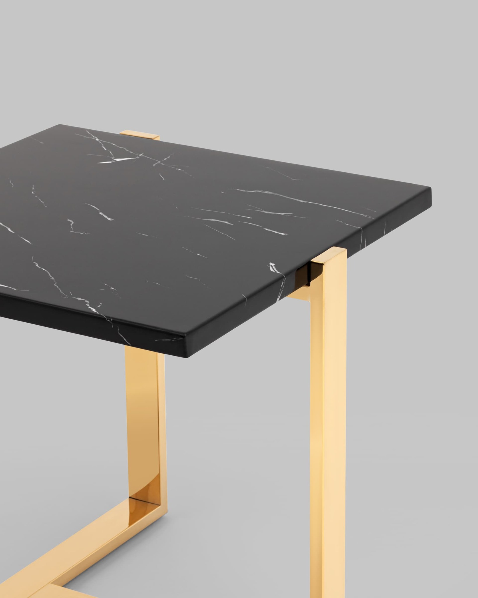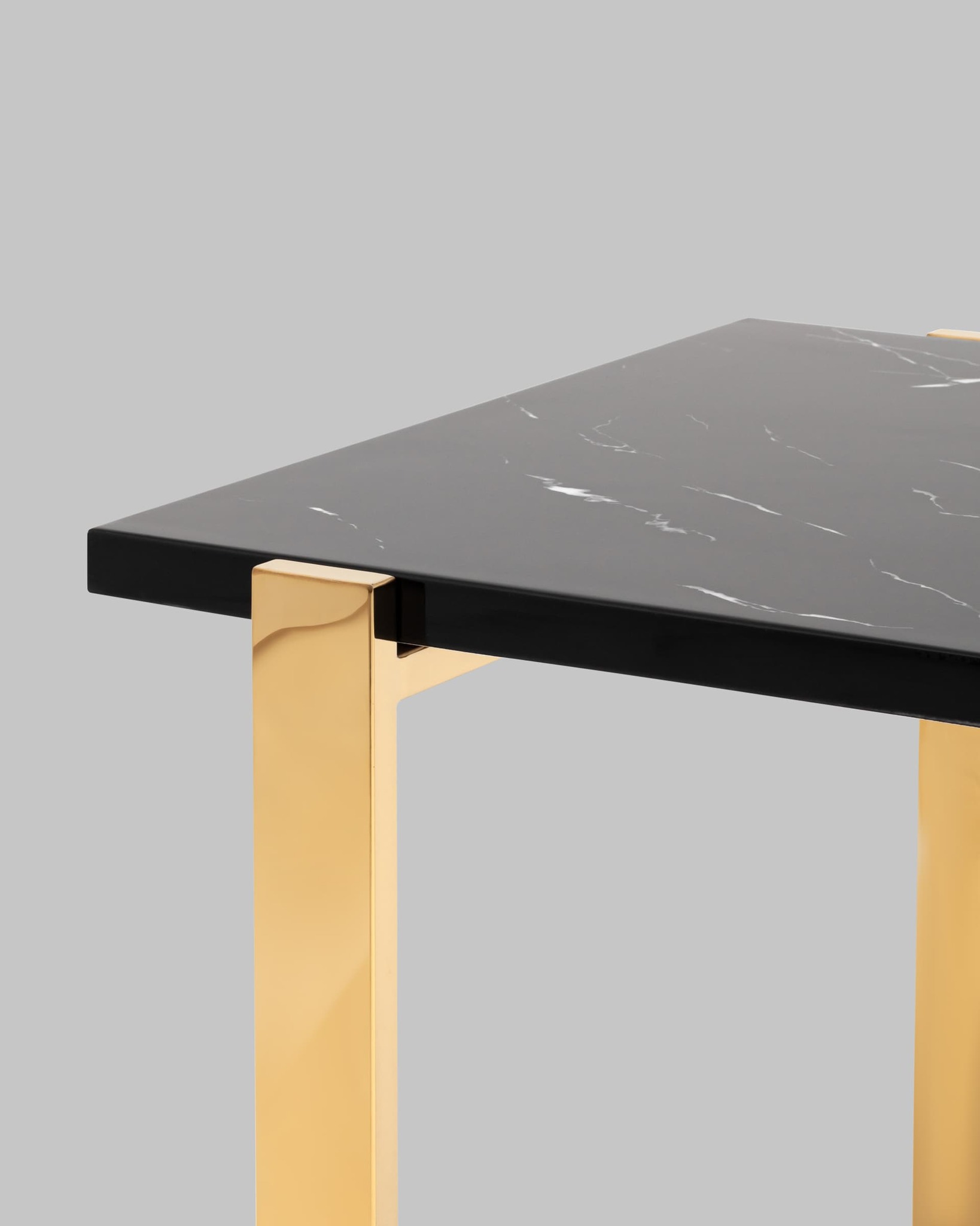 Столешница выполнена из искусственного мрамора в черном цвете, который обладает высокой механической прочностью, способен выдерживать большие нагрузки. Влагостойкий и не впитывает загрязнения.